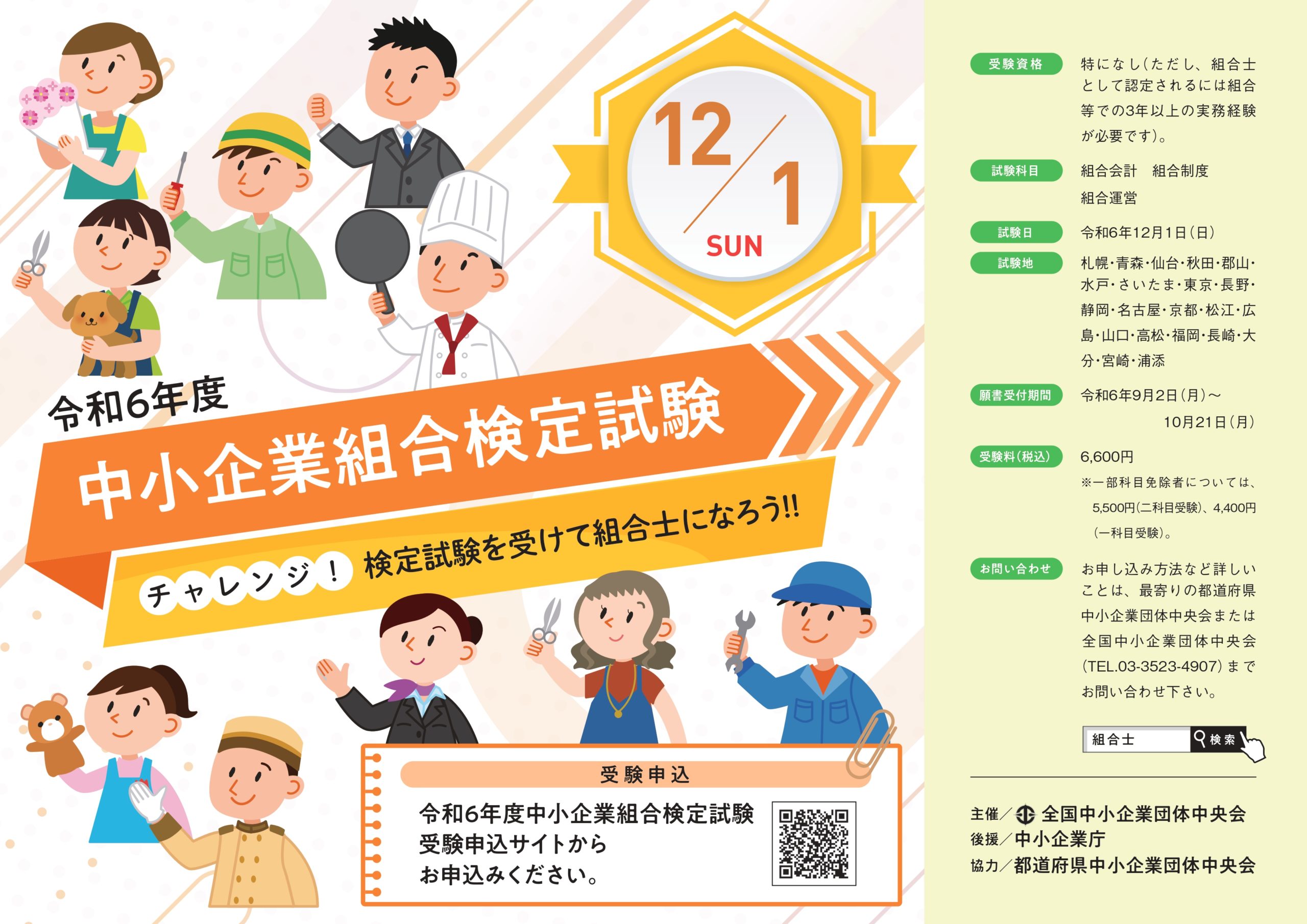 いま、中小企業組合には、ガバナンスの充実が求められており、広く社会の信頼を高め、社会的責任を果たすには、 組合運営の経験と専門知識を備えた人材が必要です。組合の業務を執行する役員、実務を担う職員の方々すべてに挑戦していただきたい資格です。