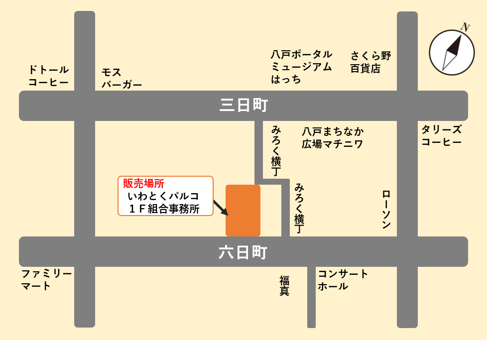 | 販売場所 | 組合事務所(いわとくパルコ1階) | |